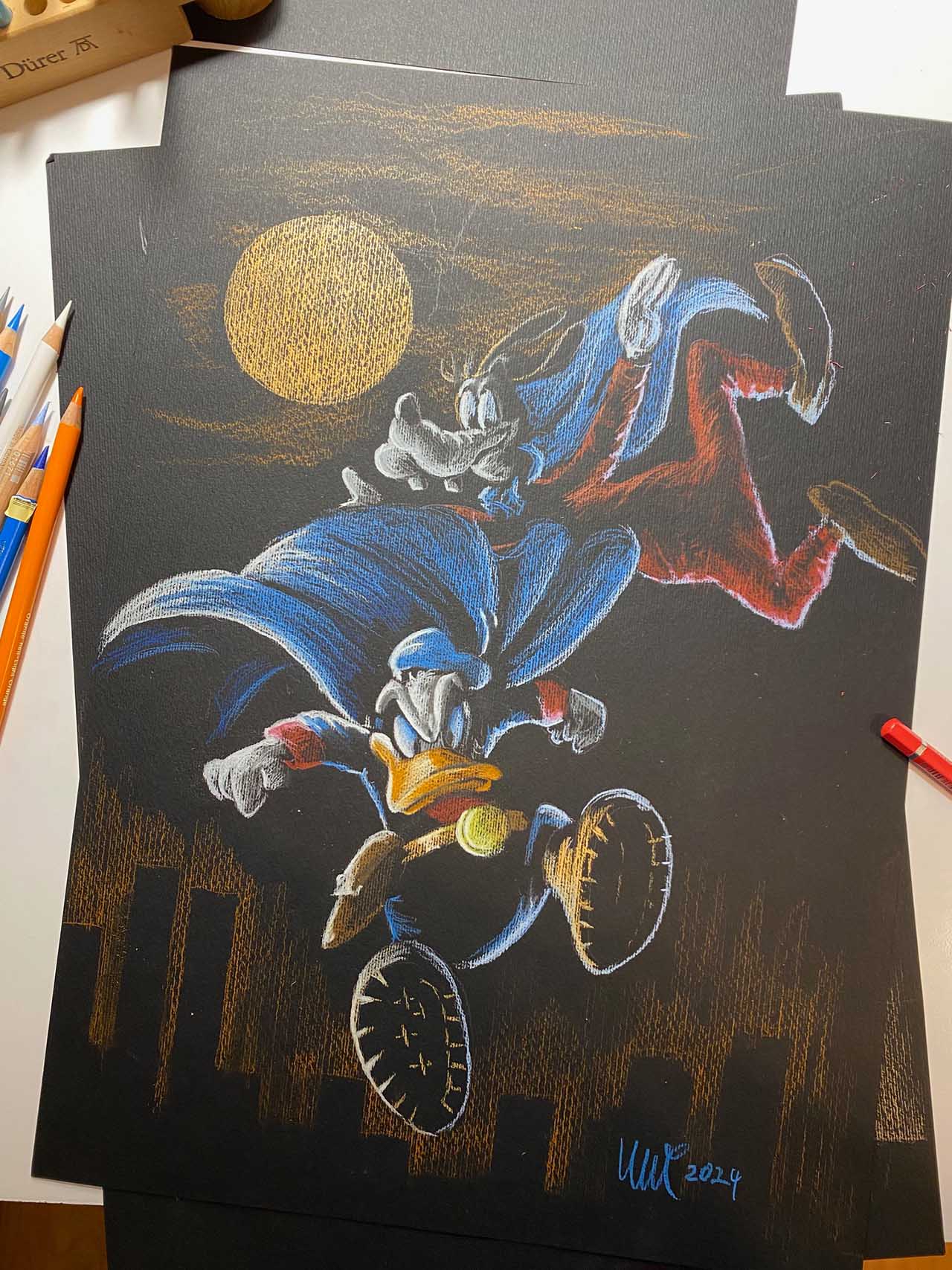 Oil pastels on boardbased on a sketch by Mark Schultz