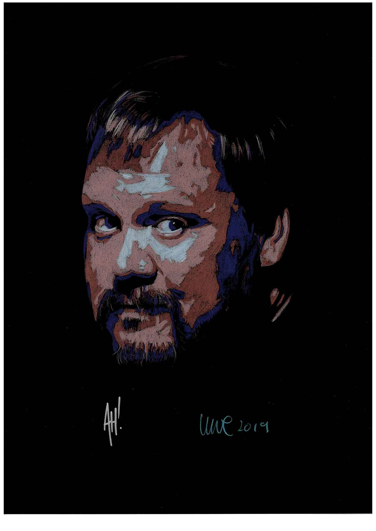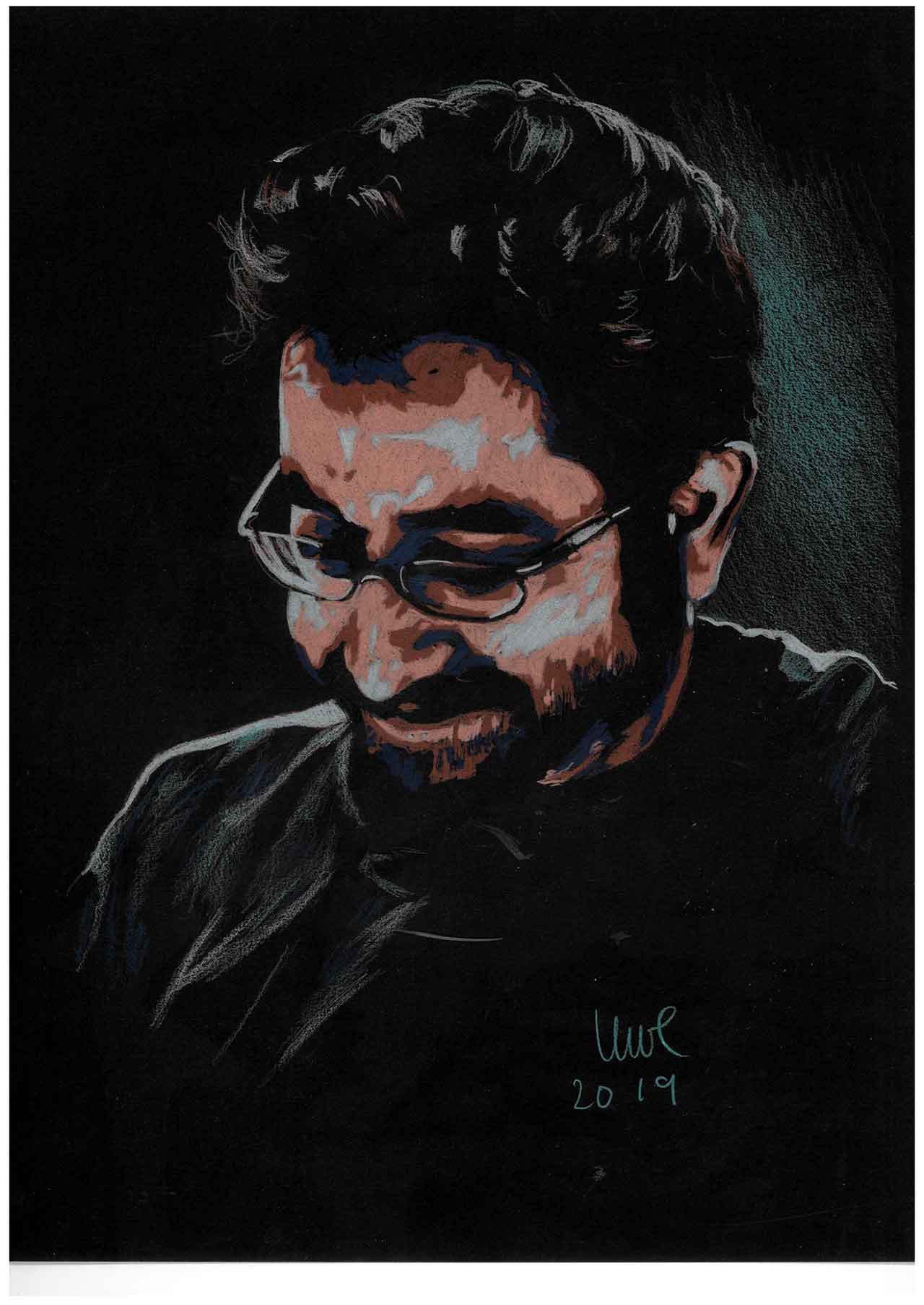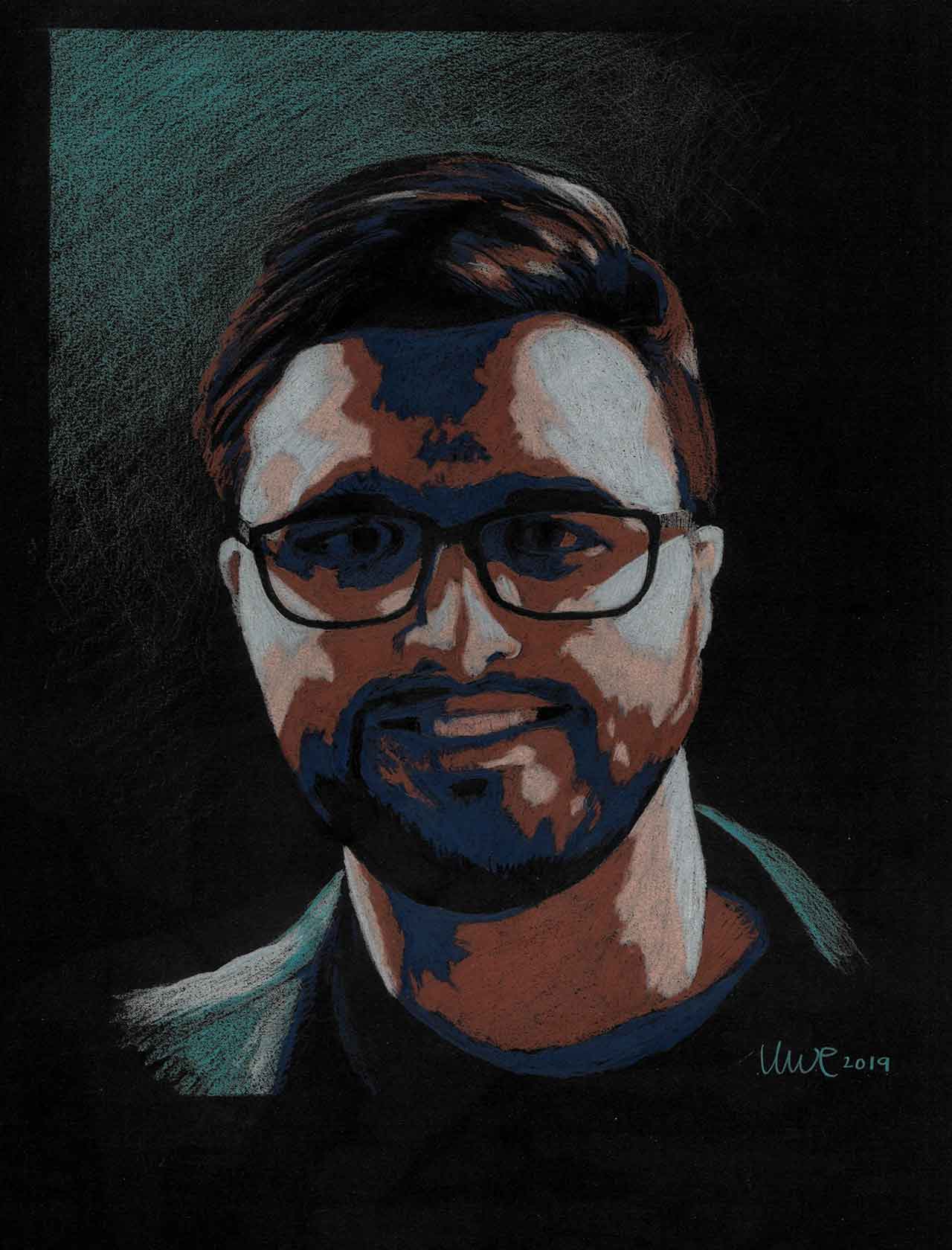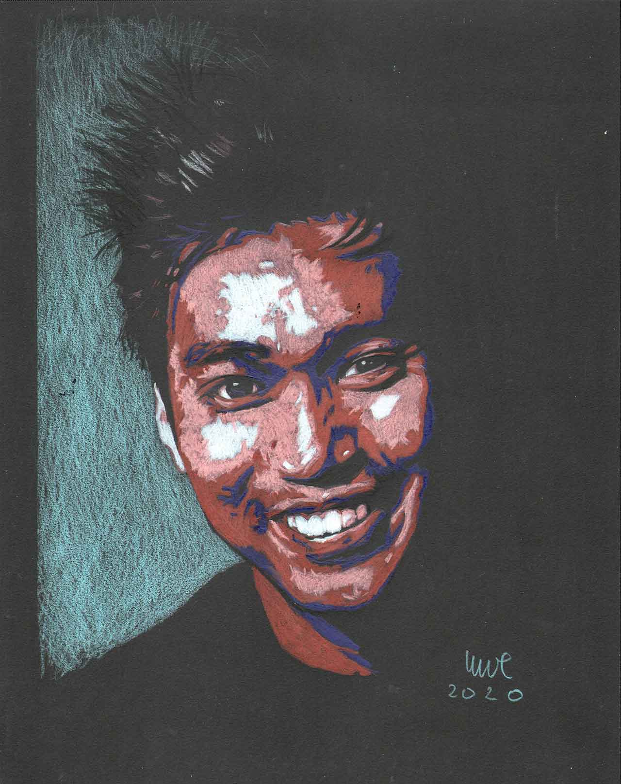 Colored pencils on black paper