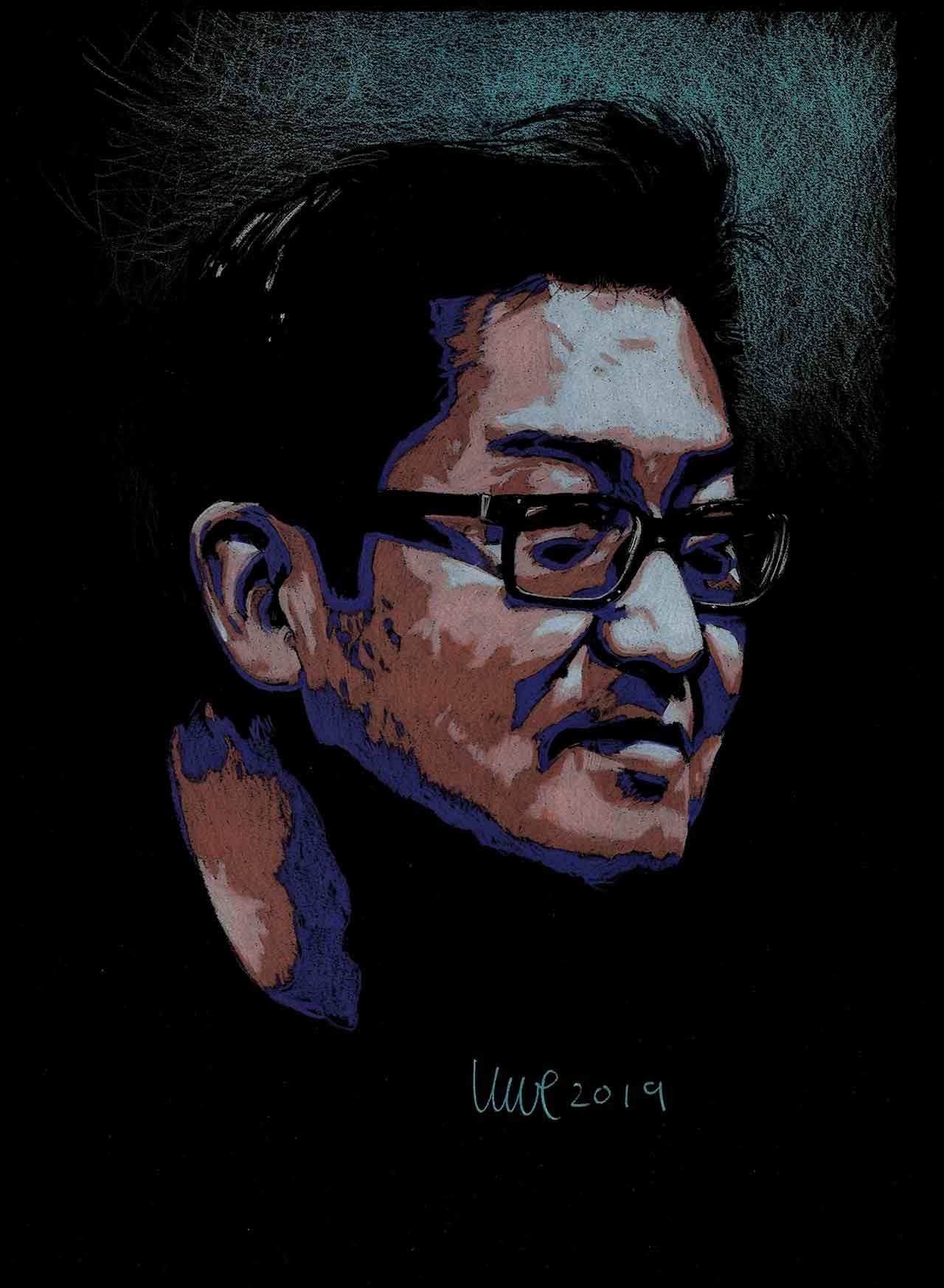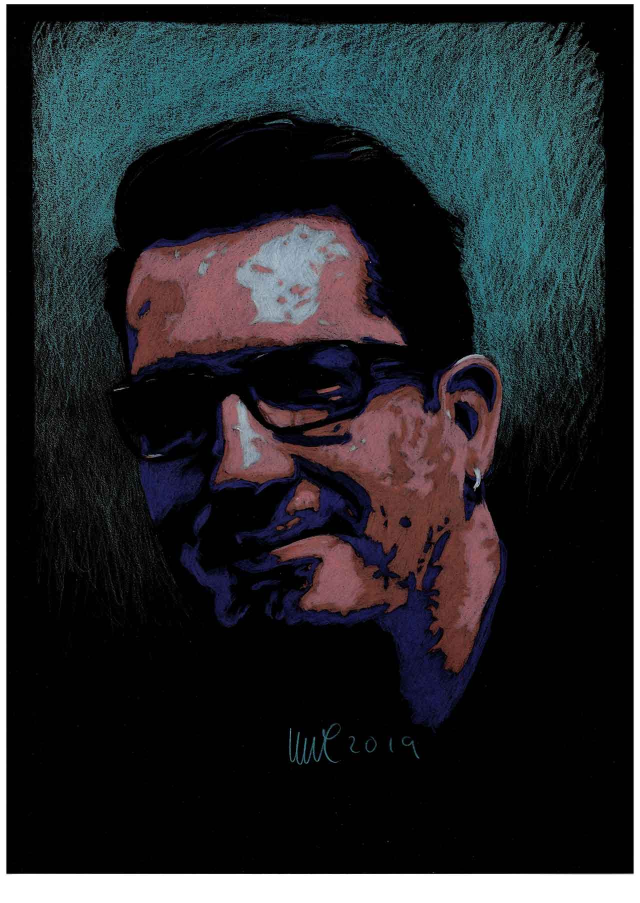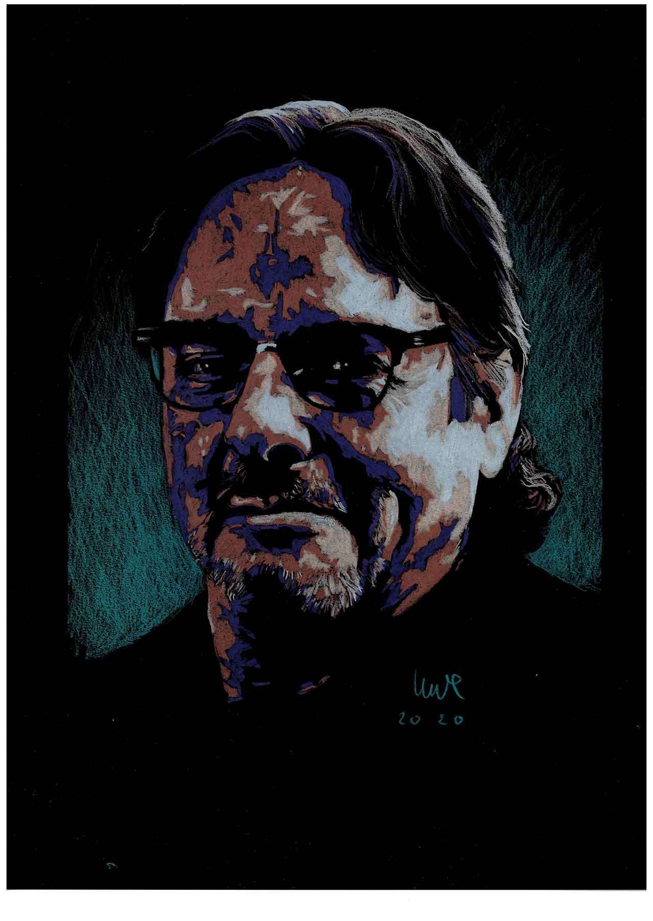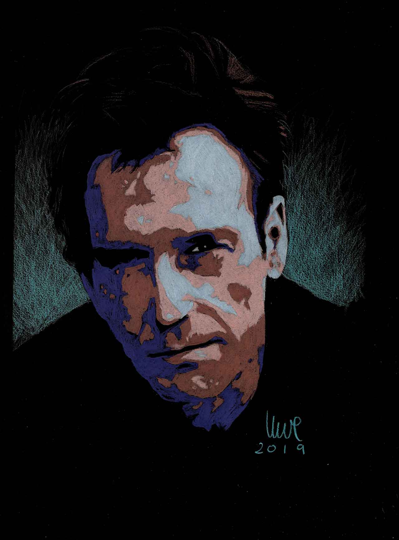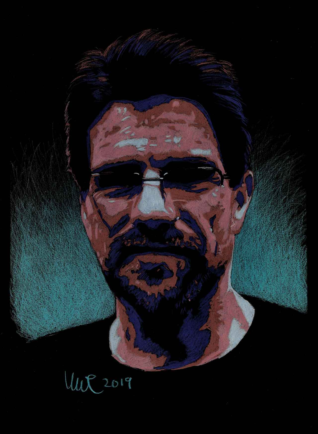 Colored pencils on black paper